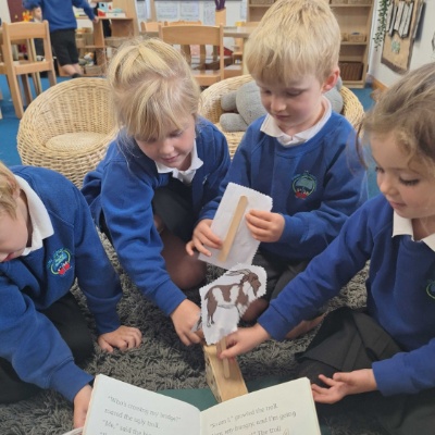 Reading is at the heart of our learning at Fowey Primary School. After our Daily Read, Write, Inc (RWI) lessons, we incorporate reading into our curriculum time. In EYFS this takes the form of 'Adventure Time'. The children choose their own area of learning from the indoor or outdoor environment, navigating challenges and frequently having to use reading skills to support them to complete tasks and challenges - such as 'What do I have to add to the magic potion?' or 'What materials can you use to build a house for Stick Man?'.